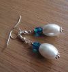 Náušnice vyrobené ze skleněných voskovaných perlí a kovových bižuterních komponentů. Délka náušnic bez háčku je 2 cm.